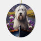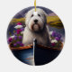 Old English Sheepdog on Paddle: A Scenic Adventure Ceramic Ornament