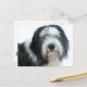 A super cute shaggy dog photo! This Old English Sheepdog gift has the dark gray and white herding breed in front of a white background. Adorable dog lover gifts!