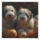 Old English Sheepdog Puppy Autumn Delight Pumpkin Faux Canvas Print