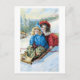 Old-fashioned Christmas, Sledding Holiday Postcard