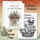 Buffalo Plaid basket and bow, whimsical country farmhouse Christmas postcard with coloring page inside. Little Christmas tree in a basket. Add family name in the personalize area.