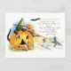 Old-fashioned Halloween, Black cat & Mice Postcard