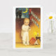 Old-fashioned Halloween, Boy & Black cat Card