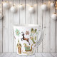It's fun to celebrate an old fashioned Christmas, and this latte mug definitely has that theme. Beautiful vintage images of a reindeer, Santa Claus, a stocking, mittens, a sleigh, and star shaped ornate snowflakes are included in a pattern around the surface of the mug. Colors include teal, red, brown, and green, all on a white background. One side has dark red text that says "Merry Christmas". Festive, unique, and a wonderful holiday keepsake. *Clip art used in this design is copyrighted by Encore Software, Inc., which permits use to its licensors. All rights reserved.