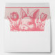 Pink Vintage Style Easter Bunny with a Soft Pink Background. Cute Classic Bunny with Flowers.