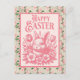 Old Fashioned Pink Easter Bunny Holiday Postcard