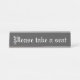 This nostalgic and old fashioned design features the message "Please take a seat". This could be used in a seating lounge to inform clients or visitors that they will be served shortly, and that they should take a seat in the meantime.