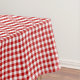 This tablecloth features red and white squares in a gingham checked pattern. Click "Customize It" to change the the size of the pattern or to personalize it.