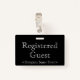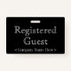 This old fashioned badge design features the message "Registered Guest", and a customizable company name or other custom message. A badge like this could perhaps be used to indicate that a person is a known and authorized guest or visitor at a business or workplace. [~Z0000307]