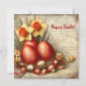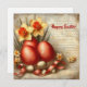 Old fashioned retro red Easter eggs daffodils Holiday Card