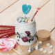 What could be lovelier than a bouquet of old fashioned roses to grace this beautiful porcelain candy jar? An exquisite design of red, pink and white antique roses are scattered from one end to the other.