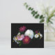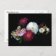 What could be lovelier than a bouquet of old fashioned roses? This postcard displays an exquisite design of red, pink and white antique roses set off by a black background.