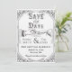 Reminiscent of old Vaudeville, here's a wonderful template for your save the date. Nostalgic -yet sweet - you'll love the old fashioned charm of this vintage wedding save the date card. Drawings of hands come together against a midst of scrolls and fun vintage fonts. "Save the Date" is above the two hands with a wonderful retro font. Easily edit and add your own text.