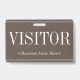 This vintage badge design features the message "VISITOR", and a customizable company name or other custom message. A badge like this could be used to identify that somebody at a workplace or business is an authorized guest/visitor. [~Z0000307]