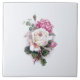 Old Fashioned White/Pink Roses-White Background Ceramic Tile