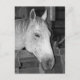 Black and White photo of a gray horse standing in a barn in Oklahoma