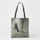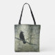 Crow in a old green damask collage on a eco-friendly tote.