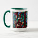 A mug decorated with "Old Growth" an acrylic painting by Sally Rayn.