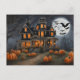 Old Halloween House and Pumpkins Holiday Postcard