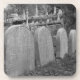 These old, stone headstones mark graves in Laurel Hill Cemetery. Historic cemeteries can have goth, eerie, or spooky qualities to them. This black and white photo casts a stark, bleak, creepy light on the necropolis. Some find cemeteries scary, frightening, or macaber. Others find cemeteries peaceful and beautiful.