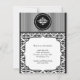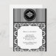 This beautiful design, called Old Hollywood Damask, would be an elegant and dramtic way to set the tone for your elegant party or event. The background at the top is a black and white pinstripe with a medallion highlighting a damask graphic in white. The background at the bottom is a black damask pattern on white with a white inset for your text. Perfect for any occassion!