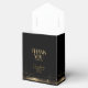 Celebrate in star-studded style with this glamorous Sweet 16 birthday tent-style favor box, inspired by the glitz and glamour of an old Hollywood event. Featuring a luxurious black and gold color palette, this elegant design is adorned with a dazzling chandelier for maximum impact. Perfect for shining the spotlight on your event honoree, this template is fully customizable with your party details and makes a stunning first impression for a night to remember. Search ID1108 to see other coordinating products in this design set. NOTE: design includes some generative content.