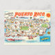 A wonderful vintage illustrated map of Puerto Rico repurposed on a postcard.