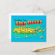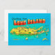 A colorful, very old postcard map of Long Island, New York repurposed on a new postcard.