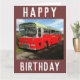 Birthday card for a bus or public transport enthusiast. Image shows an old MacBraynes coach on the Isle of Bute in Scotland.