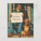 In this design, an elderly man holds a white banner with a customizable text while sitting on his porch next to his best friend.