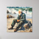 old man by the sea, seagulls flying large paint canvas print