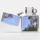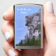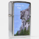 Zippo lighter that shows, "The Old Man of the Mountain", on a sunny day in summer among some evergreen trees.