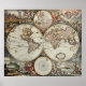 Old map of world hemispheres. Created by Frederick De Wit, published in Amsterdam, 1668