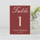 Classy and elegant old money cream and burgundy wedding table numbers. As you see it features a deep red background with cream script that match the whole suite.