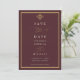 Set on a deep burgundy background with subtle gold accents and elegant serif typography, this save the date card offers a calm, sophisticated way to share your wedding date with guests while setting the tone for a luxurious celebration.