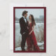 This luxury burgundy and ivory photo Save the Date card features a refined minimalist layout framed with a rich maroon border. The front showcases elegant script and classic serif typography, while the back highlights a romantic engagement photo for a timeless and personal touch.