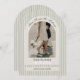 Invite guests to mark their calendars for your wedding with this Old Money Script Green Stripe Photo Save the Date Invitation! This design features an arch photo with script font and green stripes. Personalize your details and the custom monogram on the back on Zazzle! Have a custom request? Message me!