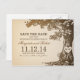 Elegant rustic save the date postcard with brown old oak tree with love heart initials.