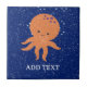 A cute orange cartoon octopus. Grainy, old paper print style image. Baby animal ceramic tiles. Edit name to customize. Gift idea for kids.