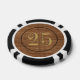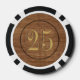 Old west saloon style wood-look $25 poker chips with customizable value and sides. Retro style numbers with stamped effect. Add your name or personalized text to create you own unique vintage playing chip. Perfect gift for the cowboy or riverboat gambling man on your list. Not made of real wood -- image is printed on ceramic. More unique masculine novelty gifts for men, poker players, casino gamblers, card sharks, executives available in store.
