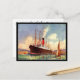 The image on this postcard has been reproduced from an old postcard of the Cunard Liner "Carpathia" leaving Messina in Sicily.