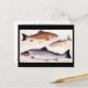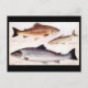 This postcard is a reproduction of a vintage postcard of some fish - Trout, Vendace and Salmon.