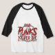 I bought the Men's Basic 3/4 Sleeve Raglan T-Shirt, White/Navy. It arrived on time for a gift and is of a great quality and fits perfectly! So cute! Zazzle has done it again! The printing was clear and filled in solidly.
