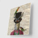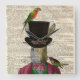 Vintage dictionary page with print of a vintage rabbit wearing a colorful suit. The vintage animal illustration false colorful vintage birds. The background is an original antique dictionary page.