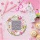 Classic floral pattern of old roses on bistre background. Very classy vintage graphics for 90th Birthday party on paper plate with cutomizable texts into a grey square shape. You can easily change texts (font, size, color and position), square and design (size and position). Matching products for birthday: paper plates, guest book, Thank you favor box and birthday gifts with monogram: mug, luggage, luggage tag, pillow, cases and more... Don't forget the whole collection of vintage floral patterns for grandma birthday.