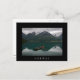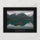 Postcard of a landscape with an old rowboat in a lake with the reflection of the mountains in the still water, Hjelle, Norway with a black border and the text: 'Norway'.