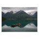 Photo print of a landscape with an old rowboat in a lake with the reflection of the mountains in the still water, Hjelle, Norway.