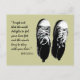 Old running shoes postcard featuring inspirational words by Khalil Gibran: Forget not that the earth delights to feel your bare feet and the winds long to play with your hair. Take off your shoes and walk barefoot to enjoy the unity with nature