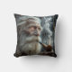 An old seaman with a long white beard and deep wrinkles gazes up at a woman's shape dancing from his smoking pipe