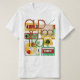 Old School Tech Retro 80's T-shirt. Cool retro vintage style ladies or mens tee features vhs tape, analog tv with rabbit ear antennae, game controller, rotary phone, turntable and cassette tape. Cool 80's retro style sepia tones, brown mustard and green.